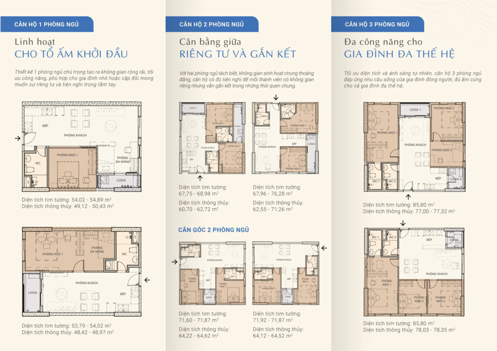 🔸 Sản phẩm: căn hộ diện tích 48m2 đến 78m2 (2 đến 3 phòng ngủ)